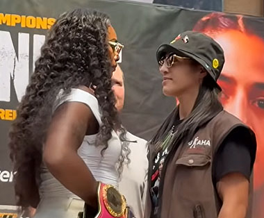 at 16-0-0 (3 KOs). Shields is set to defend her IBF, WBC, WBF, and WBO heavyweight