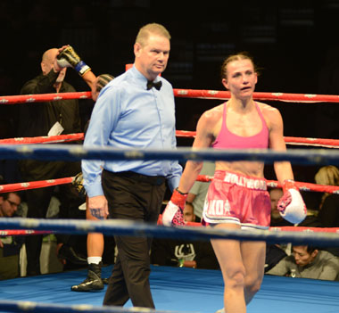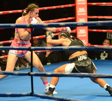 fired her jab and looked to follow it with a right to Moran’s body. Moran,