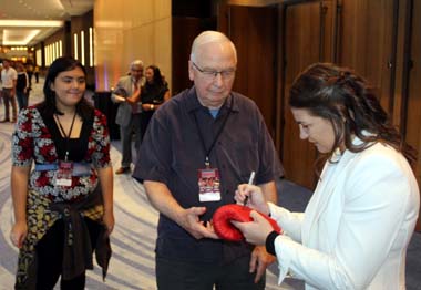 taking photos and signing autographs for fans during the cocktail hour as well